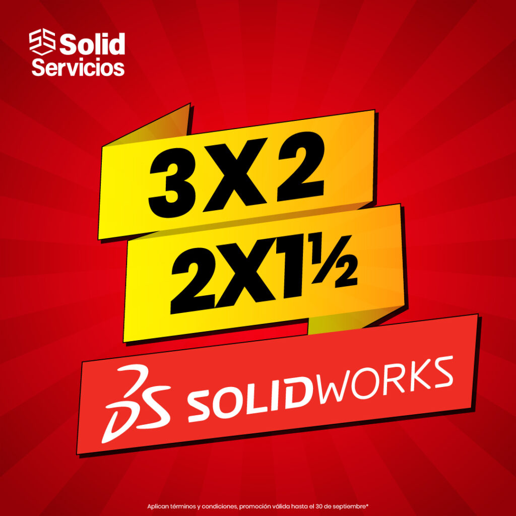 Términos y condiciones: Esta promoción es válida del 1 de septiembre al 30 de septiembre del 2025. Los productos elegibles incluyen SOLIDWORKS CAD, Electrical Schematic Professional o Electrical 3D, PDM Professional o Manage, Simulation, Composer, Inspection Professional y Visualize Professional. Oferta limitada a una por ubicación del cliente. Aplican mas términos y condiciones, para mayor información contacte a un asesor de SOLIDSERVICIOS.